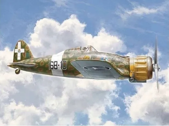 Designed by the celebre engineer Mario Castoldi, the Macchi MC 200 has represented a significant production evolution of the Italian fighter aircrafts. Compared to the biplanes Fiat CR 32 and Fiat CR 42 that were the main Italian fighters squadrons structure at the beginning of the Second World War, the Macchi MC 200 distinguished itself, together with its contemporary Fiat G50, for its monoplane configuration and for the entire metallic airframe structure. The 14 radial cylinder Fiat A.74 RC 38 double star engine was able to release 840 HP and allowing the Macchi Mc 200 to reach speeds of 500 Km/H. In comparison with the Allied fighters, it resulted to be underpowered and, neither the less, a lower fire capacity. Two 12,7mm Breda-SAFAT machineguns mounted over the characteristic engine bulged nacelle, were the only onboard armament available. In the latest versions, two additional 7,7mm Breda-SAFAT machineguns were incorporated in the wings. It has been deployed by the Regia Aeronautica on the main Second World War fronts: Africa, Mediterranean Sea, Balkans and in Russia.