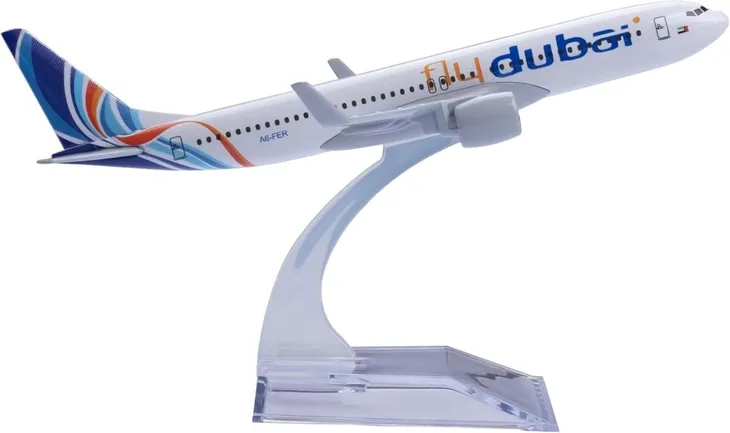 Model samolotu Boeing B737 w malowaniu Flydubai Model cechuje się wyjątkową dbałością o szczegóły, dzięki czemu idealnie nadaje się do kolekcji miłośników lotnictwa lub jako wyjątkowa ozdoba.