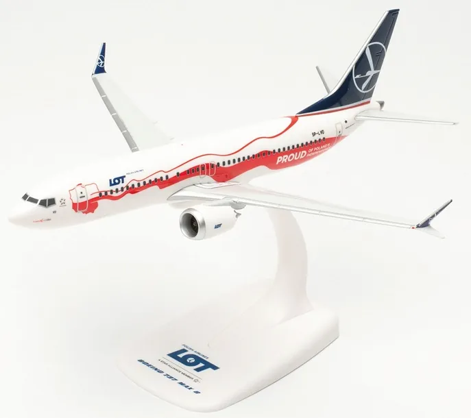 Model samolotu BOEING B737 MAX 8 linii LOT SP-LVD w specjalnym malowaniu “DUMNY”
