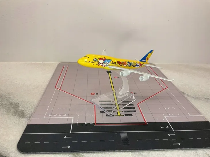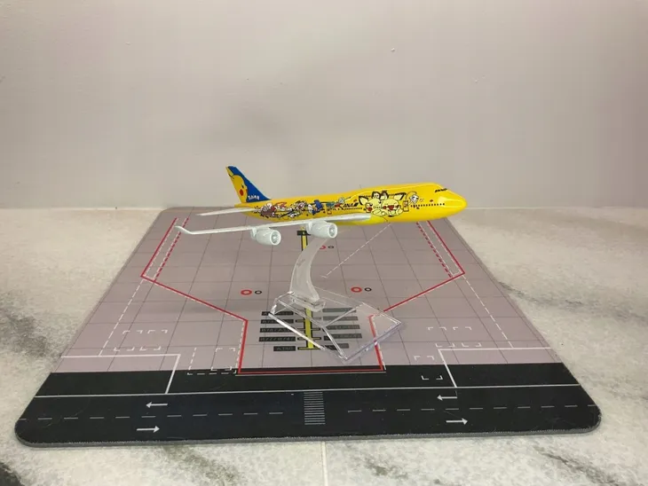 Model samolotu Boeing B747 w malowaniu ANA Pokemon. Model cechuje się wyjątkową dbałością o szczegóły, dzięki czemu idealnie nadaje się do kolekcji miłośników lotnictwa lub jako wyjątkowa ozdoba.
