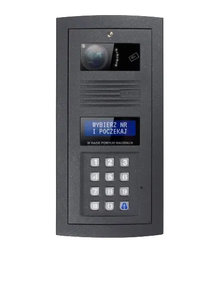 - system kodów - otwarcie zamka:8-cyfrowy kod serwisowy umożliwiający także dostęp do konfiguracji systemu 8 kodów ogólnych (4-cyfry)4-cyfrowy kod indywidualny dla każdego z obsługiwanych lokali (255)panel pozwala na wygenerowanie unikalnego zestawu 4-cyfrowych kodów indywidualnych w oparciu o podany przez instalatora 8-cyfrowy numerwybór między dwoma sposobami nawiązywania połączeń: z potwierdzeniem lub bez potwierdzenia (dzwonienie po czasie)
