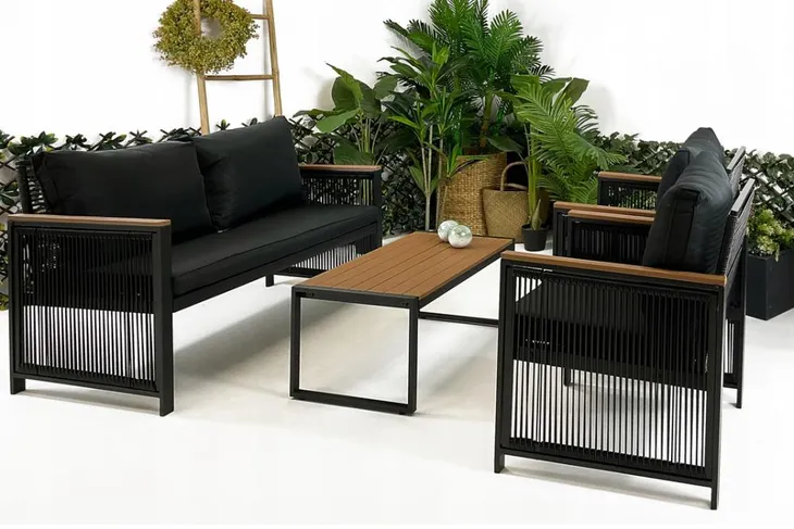 - Meble ze stelażem stalowym i oplotem z technorattanu.