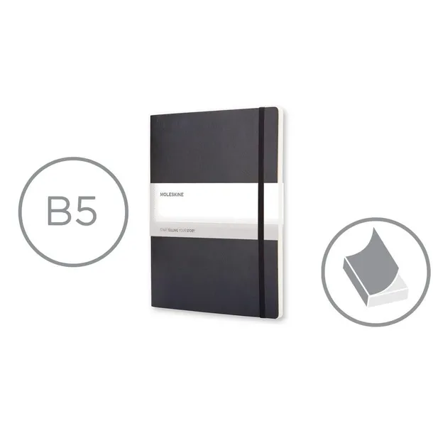 Notatnik XL (ok. B5) MOLESKINE, miękka okładka, 192 gładkie strony, kieszeń wewnętrzna, zakładka i elastyczna opaska do zamykania