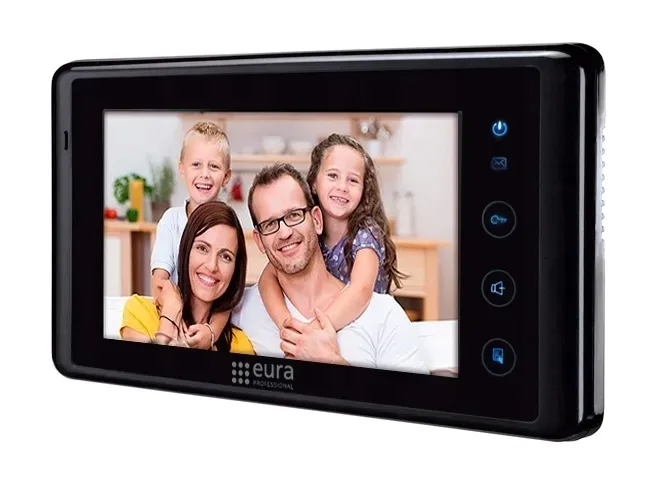 VMA-08A5 to monitor z kolorowym dotykowym ekranem LCD o przekątnej 7.0", przeznaczony do zainstalowania wewnątrz lokalu użytkownika / lokatora, kompatybilny z wszystkimi modułami systemu Eura Pro CAT5.