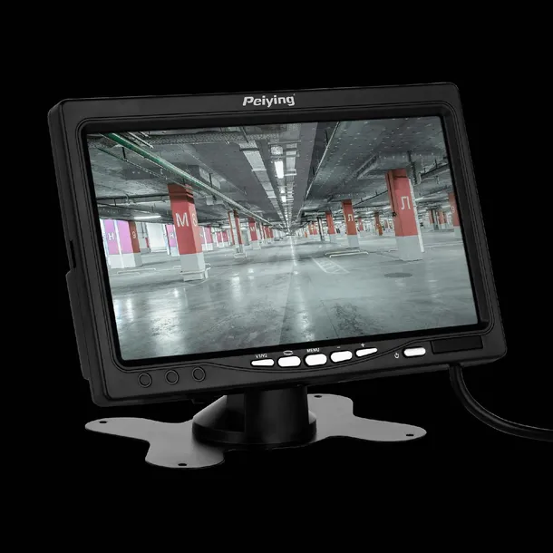 Monitor Peiying wyposażony jest w kolorowy wyświetlacz TFT o przekątnej 7 cali i proporcjach 16:9. Rozdzielczość 480 × 800 px RGB w połączeniu z jasnością 300 cd/m² oraz kontrastem 350:1 zapewnia wyraźny, czytelny obraz. Idealny do zastosowań, gdzie liczy się szybki i precyzyjny podgląd wideo.