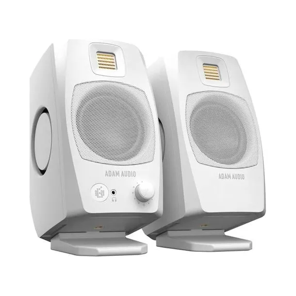 D3V to w pełni aktywny system monitorów biurkowych zaprojektowany z myślą o autorach piosenek, producentach oraz miłośnikach muzyki, którzy chcą cieszyć się wysoką jakością dźwięku ADAM Audio w najbardziej wygodny sposób. Dostępny w wersji białej lub czarnej, ten zestaw monitorów wyposażony jest w ikoniczny złoty wstęgowy tweeter, zachowując przy tym dziedzictwo niemieckiego designu przemysłowego ADAM Audio.