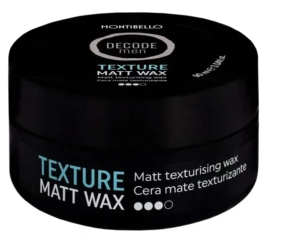 Montibello Decode Texture Men Matt Wax to ikona w stylizacji męskich fryzur. Matowy wosk idealnie sprawdzi się do układania krótkich i półdługich włosów, definiując kosmyki i nadając im wyraźną strukturę, a kiedy zechcesz pozwoli także stworzyć zarówno gładki i klasyczny, jak i buntowniczy, nieco potargany look. Kosmetyki Montibello Decode stworzone zostały przez ekspertów specjalnie dla profesjonalnych stylistów, by umożliwić uzyskanie każdej, nawet najbardziej fantazyjnej fryzury. Formuły kosmetyków z serii Texture zawierają zmieszanie w odpowiednich proporcjach woski, polimery, olejki i żywice. Odpowiadają za utrwalenie kształtu, nadanie faktury oraz chronią kosmyki przed czynnikami zewnętrznymi.