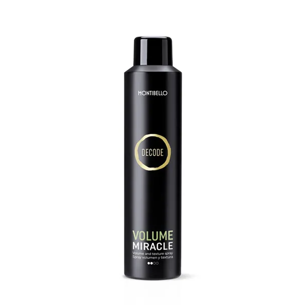 Montibello Decode Volume Miracle - spray nadający objętość i teksturę, został stworzony do włosów cienkich, oferując trwałe uniesienie od nasady, poprawę gęstości i nadanie faktury, bez obciążania włosów.