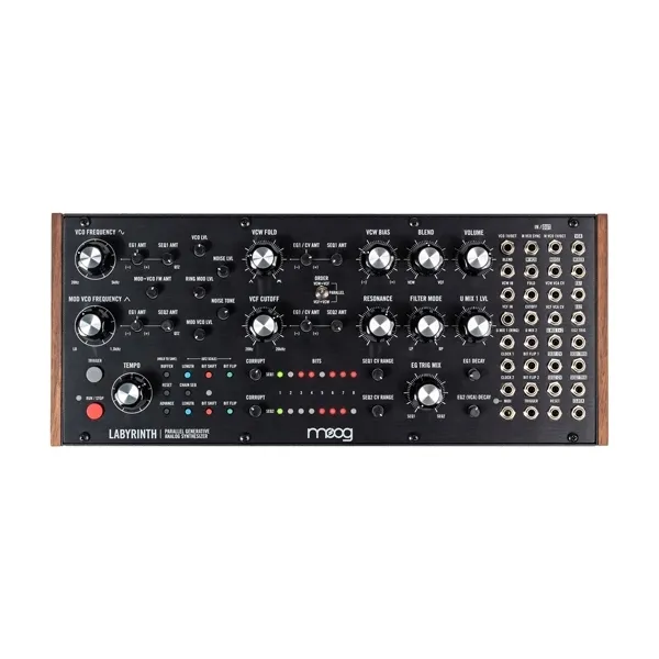 Labyrinth poprowadzi twoje sesje nagraniowe w nieodkryte rejony kreatywności. Bijącym sercem Moog Labyrinth jest solidny podwójny sekwencer, wykorzystujący operacje losowe do budowania dwóch wyjątkowych ośmiokrokowych śladów, które wyginają się i splatają ze sobą, tworząc zachwycającą dźwiękową ścieżkę. Dzięki w pełni funkcjonalnej krosownicy, Labyrinth może być synchronizowany za pośrednictwem zegara analogowego lub MIDI w trakcie przetwarzania sygnału, lub gdy na brzmienie instrumentu wpływa działanie innego urządzenia.
