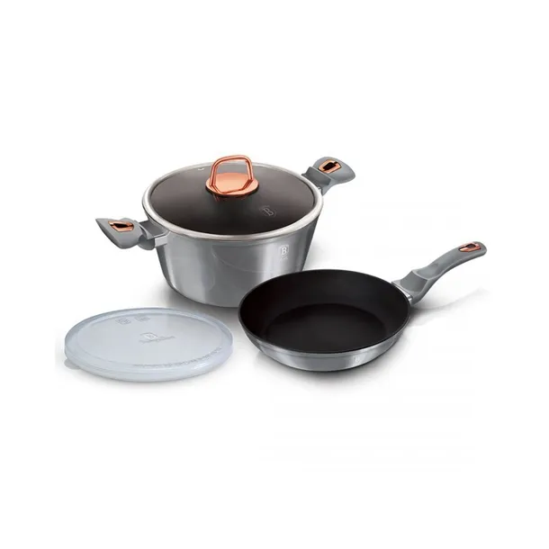 Garnki i patelnie z serii MOONLIGHT COLLECTION firmy BERLINGER RHAUS wykonane są z wysokiej klasy aluminium pokrytego wewnątrz powłoką granitową o bardzo wysokim współczynniku twardości. Powłoka zewnętrzna w kolorze czarnym, Te atrakcyjne i modne naczynia wyposażone są standardowo w uchwyty typu SOFT TOUCH (silikon handle). Przystosowane do wszystkich rodzajów kuchenek: gazowa, elektryczna, ceramiczna, halogenowa, indukcyjna. System TURBO INDUCTION (bardzo szybko nagrzewają się) pozwala zaoszczędzić nawet 35% energii.