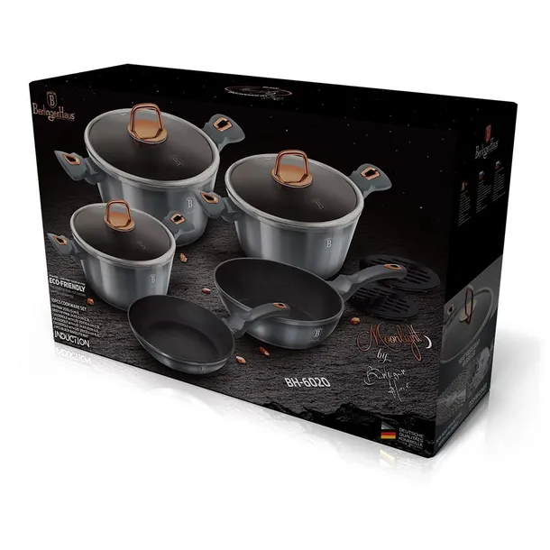 10 elementowy zestaw garnków z linii Moonligt Metallic z powłoką tytanową.