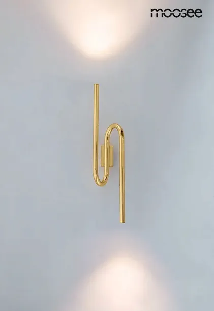 MOOSEE lampa ścienna MACAROON złota. Nowoczesna oprawa ścienna o designerskim kształcie, rozpraszającym światło w górę, jak i w dół. Całość wykonano ze stali w eleganckim złotym kolorze. Macaroon idealnie odnajdzie się we współczesnych wnętrzach, dodatkowo tworząc przy tym ozdobę na ścianie.