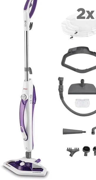 Ten nowoczesny mop parowy 2 w 1 skutecznie usuwa brud, kurz i bakterie z różnych powierzchni . Para o wysokiej temperaturze eliminuje aż 99,9% wirusów i zarazków, zapewniając czystość bez użycia detergentów ?.