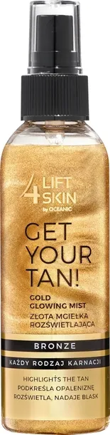 Get Your Tan! Rozświetlająca mgiełka do ciała natychmiastowo nadaje skórze złocisty blask, utrwala oraz naturalnie podkreśla opaleniznę.