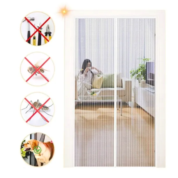- Ta magnetyczna moskitiera może być łatwo przymocowana do drzwi balkonowych, drzwi w sypialni, kuchni, pokoju dziecięcym lub drzwi przesuwnych.
