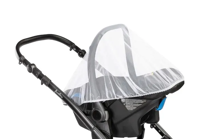 Podczas podróży samochodem lub w trakcie odpoczynku na świeżym powietrzu niemowlak jest narażony na niepożądane towarzystwo insektów. Nowy produkt Caretero, który pomoże skutecznie ustrzec dziecko przed tym zagrożeniem to „Uniwersalna moskitiera do fotelików samochodowych”. Drobna siateczka otoczona elastyczną gumką to proste i niedrogie rozwiązanie, które pasuje do każdego fotelika/nosidełka dla najmłodszych.