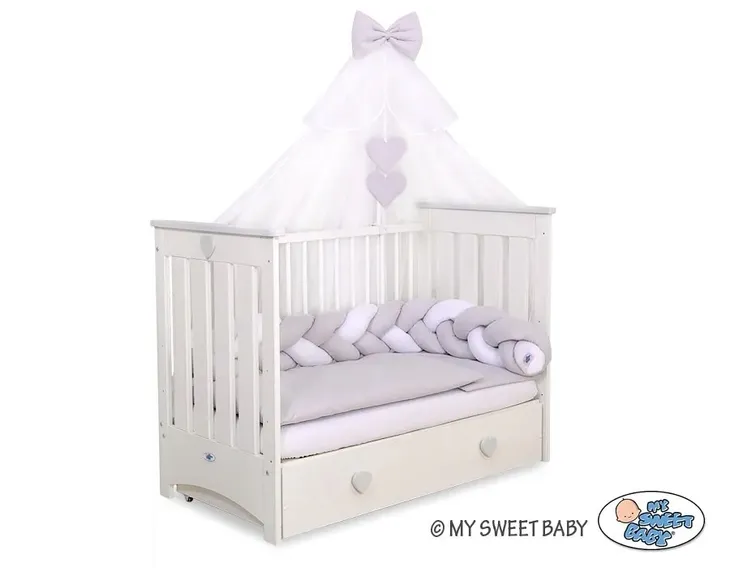 Duża dwufunkcyjna moskitiera. Wykonana z delikatnego i zwiewnego jak chmurka tiulu, wygląda na łóżeczku niezwykle ozdobnie.