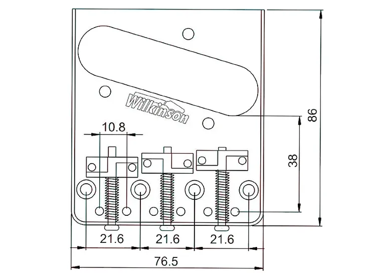 Doskonała vintage'owa konstrukcja do gitar typu Tele. Mostek jest wyposażony w mosiężne siodełka z kompensacją które pozwalają na lepszą intonację instrumentu. Możliwość instalacji strun zarówno przez mostek jak i korpus. Wymiary na załączonym zdjęciu.