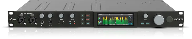 Wyposażony w wiodącą w branży technologię Thunderbolt 4 / USB4, interfejs audio 10pre łączy się z komputerami Mac, PC oraz urządzeniami iOS, oferując ekstremalnie niskie opóźnienia oraz wysokowydajne sterowniki. Urządzenie zapewnia obsługę do 54 kanałów wejścia/wyjścia audio, analogowe I/O w konfiguracji 10×8, dziesięć wyjątkowo cichych przedwzmacniaczy mikrofonowych o wzmocnieniu do +74 dB, wejścia instrumentalne Hi-Z na gniazdach jack 1/4", a także doskonałą jakość analogową opartą na renomowanej technologii przetworników ESS Sabre32™ DAC. Na wyposażeniu znajdują się dwa 8-kanałowe banki optycznych cyfrowych wejść/wyjść, mikser 64-kanałowy z 32 magistralami oraz wbudowane przetwarzanie efektów 32-bit, obejmujące pogłos, korektor 4-pasmowy, kompresor oraz bramkę szumów.