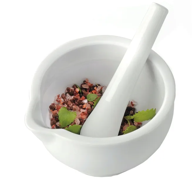 Porcelanowy moździerz MACINO to niezbędny element każdej kuchni. Dzięki ergonomicznemu tłuczku z łatwością rozgniecisz nawet najtwardsze ziarna pieprzu, a także świeże zioła. Wyprofilowane zakończenie pozwoli Ci na precyzyjne i czyste wysypywanie zmielonych przypraw wprost na przygotowaną potrawę lub do pojemnika. Moździerz wykonany jest z wysokiej jakości porcelany, co zapewnia trwałość i łatwe utrzymanie w czystości.