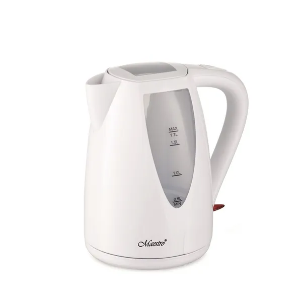 Czajnik elektryczny Maestro MR-043 to praktyczne urządzenie, które łączy nowoczesny design z niezawodną funkcjonalnością. Dzięki pojemności 1,7 litra oraz mocy 2200 W zagotujesz wodę błyskawicznie – idealnie na poranną kawę, aromatyczną herbatę czy szybkie danie instant. To niezastąpiony sprzęt w każdej kuchni, który łączy elegancję, wygodę i bezpieczeństwo użytkowania.