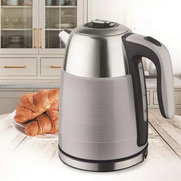 Nowoczesna sylwetka czajnika oraz harmonijne połączenie stali i matowych szarości sprawiają, że urządzenie prezentuje się wyjątkowo estetycznie. Subtelne detale nadają mu nowoczesnego charakteru, dzięki czemu stanie się nie tylko praktycznym sprzętem, ale również atrakcyjnym elementem wyposażenia kuchni.