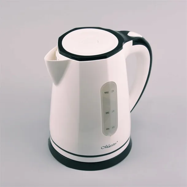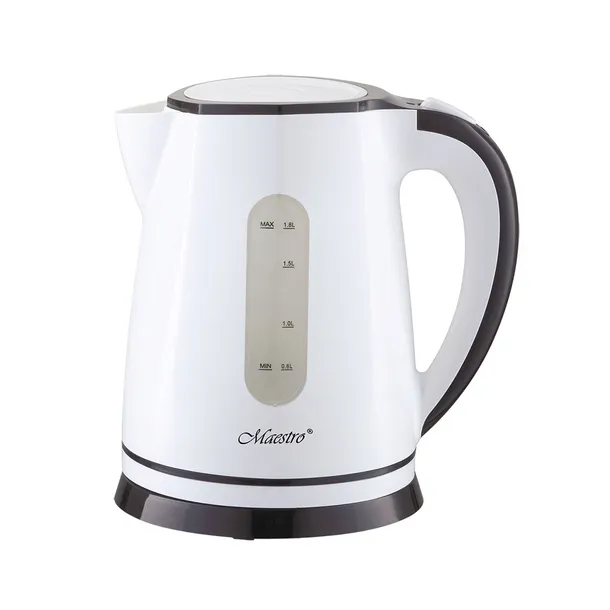 Czajnik elektryczny Maestro o pojemności 1,8 litra to nowoczesne i niezwykle praktyczne urządzenie, które świetnie sprawdzi się w każdej kuchni. Jego elegancki, biały design z kontrastującymi czarnymi elementami nadaje mu ponadczasowego charakteru, dzięki czemu doskonale wpasuje się zarówno w nowoczesne, jak i klasyczne aranżacje wnętrz. To czajnik zaprojektowany z myślą o wygodzie użytkownika oraz wysokiej funkcjonalności.