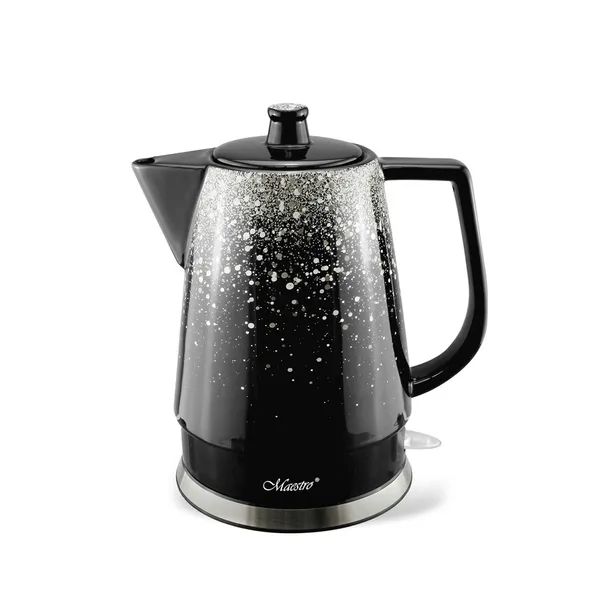 Ceramiczny czajnik elektryczny Maestro 1,5 l 1500 W to wyjątkowe urządzenie, stworzone z myślą o osobach, które oczekują nie tylko szybkiego gotowania wody, lecz także pięknego designu i trwałości. Jego czarne, połyskujące wykończenie ozdobione srebrnymi, delikatnie rozproszonymi akcentami sprawia, że czajnik natychmiast przyciąga uwagę i staje się elegancką ozdobą każdego wnętrza.