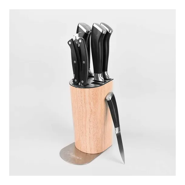 Zestaw noży firmy MAESTRO to idealne połączenie funkcjonalności, stylu i trwałości. Dzięki eleganckiemu designowi i wysokiej jakości wykonaniu, sprawdzi się zarówno w nowoczesnych, jak i klasycznych wnętrzach kuchennych. To komplet, który sprosta codziennym zadaniom każdego domowego (i nie tylko!) kucharza.