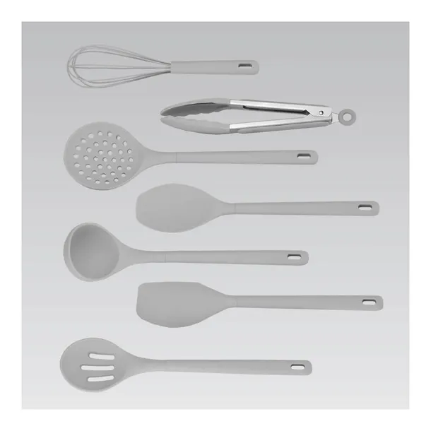 Zestaw przyborów kuchennych marki Maestro to praktyczny komplet akcesoriów, który ułatwia codzienne gotowanie i przygotowywanie potraw. W komplecie znajduje się 8 funkcjonalnych elementów, wykonanych z wysokiej jakości silikonu z trwałym rdzeniem, które zapewniają wygodę użytkowania oraz odporność na wysokie temperatury.