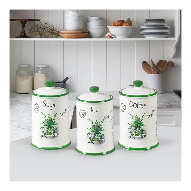 ZESTAW POJEMNIKÓW CERAMICZNYCH NA KAWĘ, HERBATĘ I CUKIER MAESTRO MR-20065-03CS