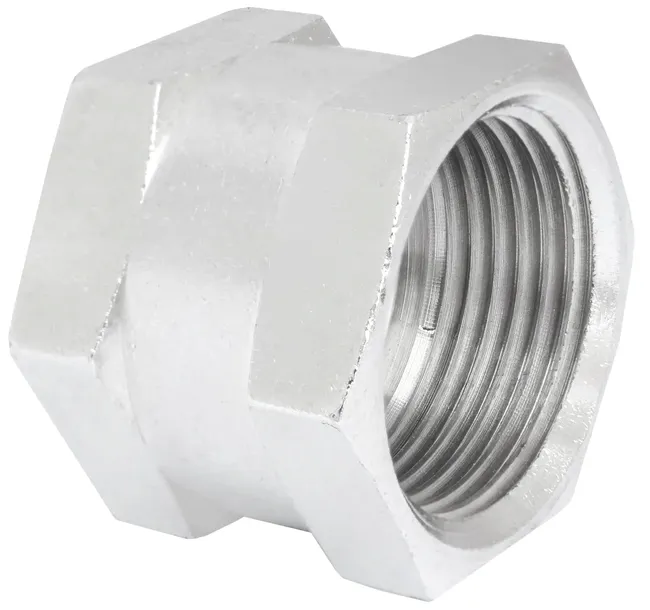 Łącznik - mufa wykonana z mosiądzu niklowanego.