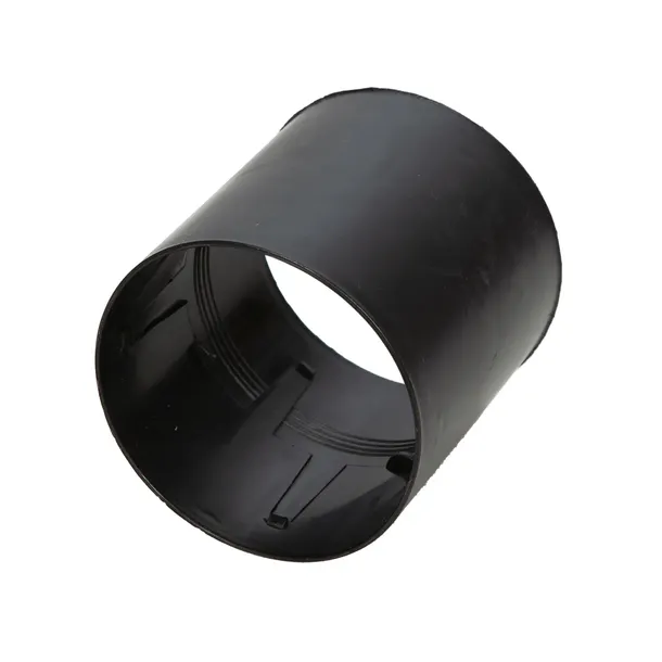 Mufa do rury o średnicy 100 mm. Umożliwia równoległe połączenie dwóch odcinków rur. Wykonana z tworzywa sztucznego, stosowana w systemach kanalizacyjnych i instalacji do wody deszczowej.