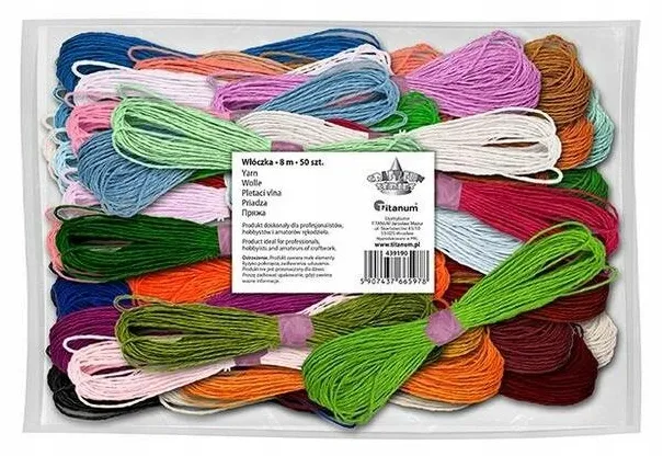 Mulina w zestawie 50 kolorów . Każdy motek o długości 8 m . Wykorzystywana przede wszystkim do haftowania, ale także do innych robótek ręcznych, m.in. wykańczania zakładek do książek, albumów, kartek okolicznościowych oraz ręcznie wykonywanej biżuterii, np. wyplatania bransoletek.