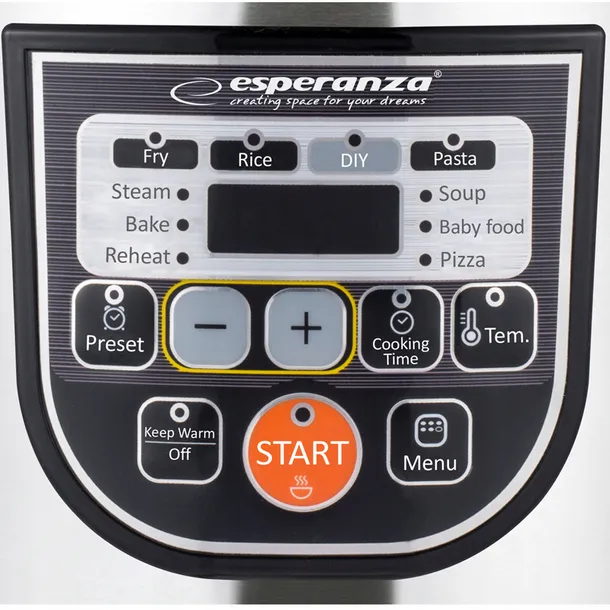 Zastąp kilka urządzeń jednym – Esperanza MATE to inteligentny multicooker, który gotuje, smaży, piecze i dusi, pozwalając Ci przygotować zdrowe i pyszne posiłki szybciej niż kiedykolwiek. Idealny dla osób ceniących wygodę, oszczędność czasu i miejsca w kuchni.