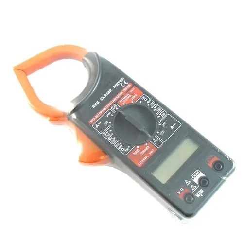 Miernik o zaawansowanych możliwościach. Posiada "cęgi", które umożliwiają pomiar prądu bez przerywania obwodu - wystarczy "objąć" cęgami żyłę, w której "płynie" prąd, a odczyty właściwości prądu pojawią się na wyświetlaczu.