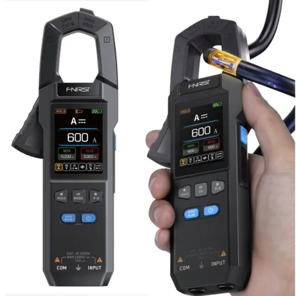 FNIRSI DMC-100 to inteligentny miernik cęgowy o wysokiej precyzji, oferujący szeroki zakres pomiarowy do 750 V i 600 A.