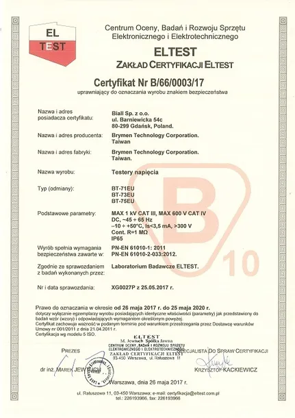 zgodnie z EN61010+EN61243-3 Ed. 3.