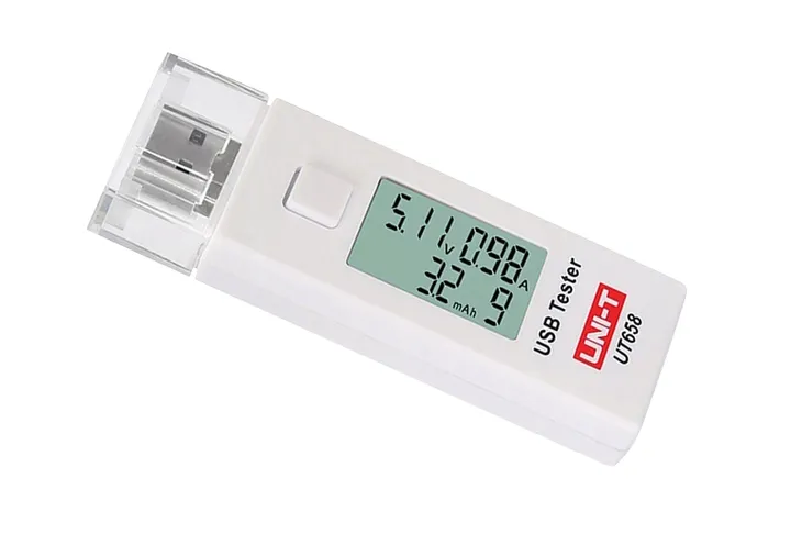 Tester pozwalający sprawdzić poprawności działania ładowarki, przewodu USB lub złącza USB znajdującego się w komputerze. Urządzenie pozwala zmierzyć wartość napięcia złącza oraz pobór prądu. Jest to urządzenie typu plug and play. Nie wymaga kalibracji, dodatkowego oprogramowania ani zasilania bateryjnego. Miernik wyposażono w gniazdo oraz wtyk USB A 2.0. Rezultaty pomiarów wyświetlane są na mały wyświetlaczu LCD z podświetleniem.