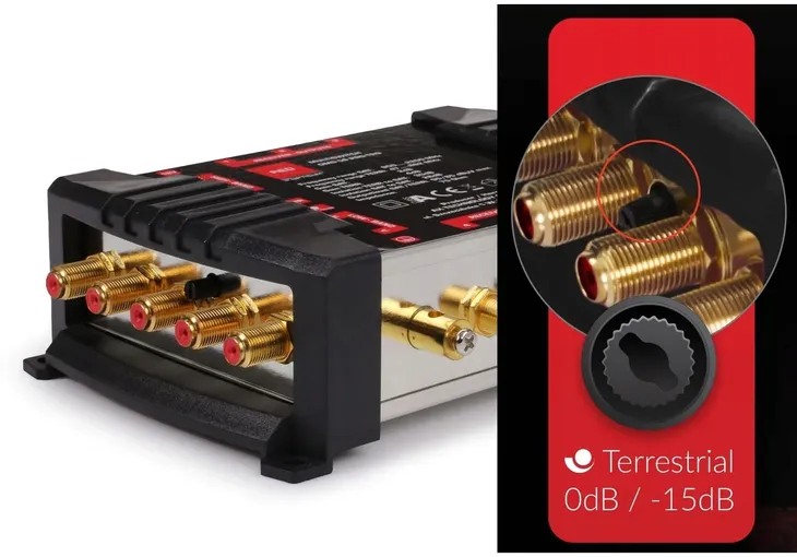 Multiswitch wyróżnia na tle konkurencji możliwość regulacji tłumienia sygnału telewizji naziemnej w zakresie 15dB.