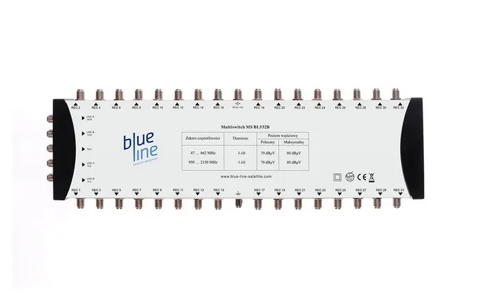 Zaletą multiswitcha Blue Line MS BL532B jest odłączalny zewnętrzny zasilacz , który pozwala w sytuacji wystąpienia usterki na jego szybką wymianę - bez konieczności demontażu całego multiswitcha.