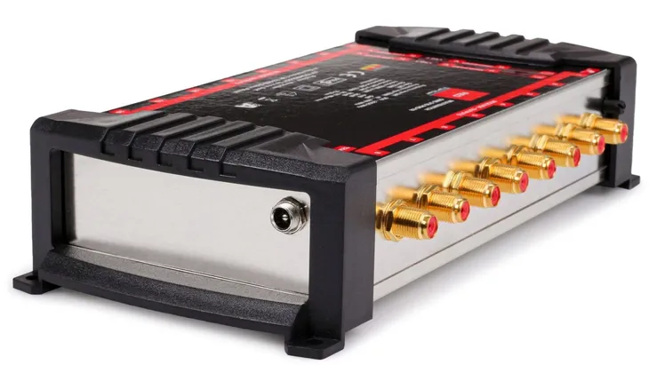 Zasilanie multiswitcha odbywa się za pośrednictwem zewnętrznego zasilacza (w zestawie) dzięki czemu wyeliminowane jest zjawisko zwiększonej temperatury pracy będące częstym powodem uszkodzeń urządzenia.