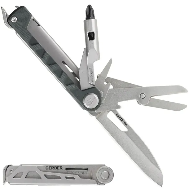 - dłutko, hak wielofunkcyjny, nożyczki, ostrze, otwieracz do kapsli, otwieracz skrzyń, szpikulec-szydło, śrubokręt krzyżakowy, śrubokręt płaski