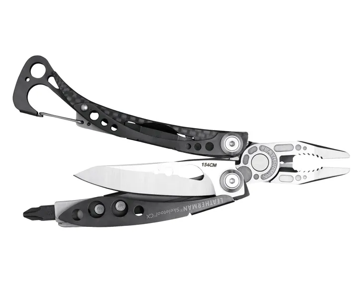 Najnowsza wersja bestsellerowego modelu Skeletool CX wyróżnia się zastosowaniem wysokiej klasy stali 154CM na ostrzu. Prócz tego ramiona kombinerek pokryto twardą, czarną powłoką wolframową DLC.
