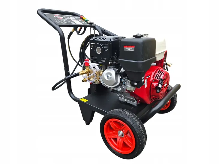 Przenośna - mobilna spalinowa myjka ciśnieniowa wyposażona w super wydajna pompę 250bar oraz ORYGINALNY 15KM silnik spalinowy HONDY 4 suwowy GX420 a także przewód o długości 8m zakończony szybko-złączami.