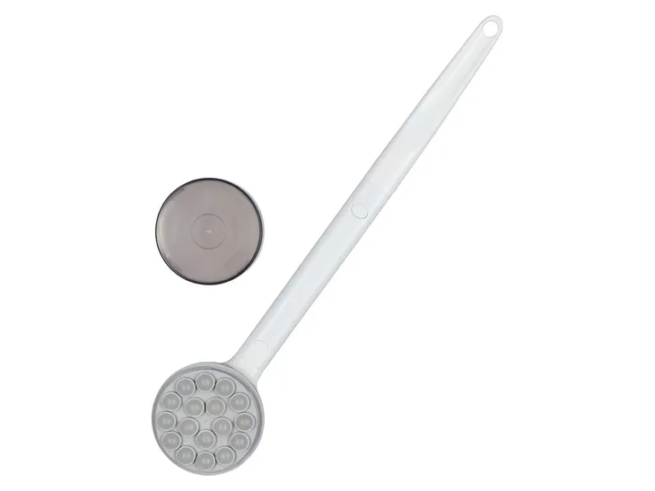 Masażer z odkręcaną główką na balsam lub płyn do mycia. Idealny podczas kąpieli w wannie lub pod prysznicem oraz nawilżenia skóry pleców.