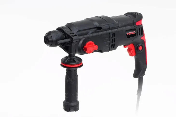 Elementy obsługowe umieszczone na ergonomicznym uchwycie pokrytym warstwą antypoślizgową, gwarantują optymalną kontrolę nad urządzeniem w każdej sytuacji oraz zapewniają komfortowe użytkowanie nawet podczas długiej pracy. Wzmocniona głowica o zwiększonej odporności, wykonana z wysokiej jakości materiałów, zapewnia trwałość i odporność na uszkodzenia mechaniczne. Niewielka waga maszyny, wynosząca zaledwie 3,4 kg gwarantuje doskonały komfort podczas długiej pracy. Dla maksymalnego komfortu, młotowiertarka NAC HE90-LD została wyposażona w dodatkową rękojeść.