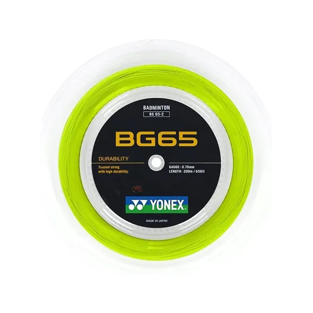 Yonex BG 65 - najpopularniejszy naciąg do badmintona na świecie. Średnica 0,70 mm i specjalne zaplecione włókna redukują ścieralność struny zapewniając, ekstremalną wytrzymałość. Idealny dla wszystkich graczy.