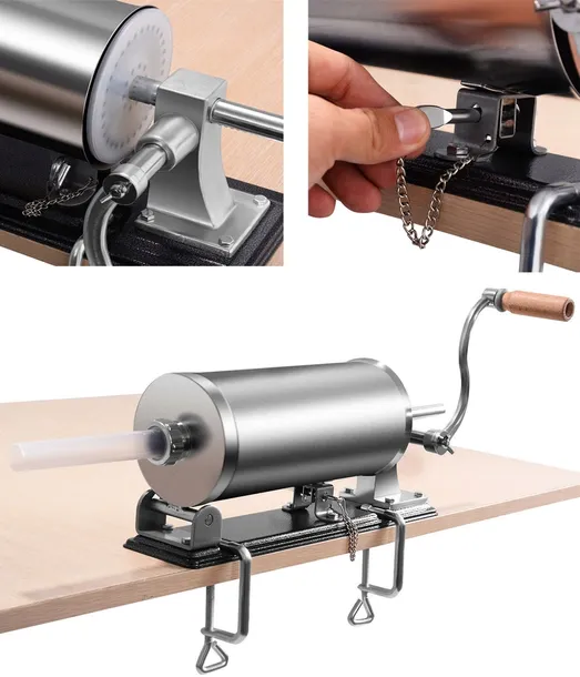 - Wykonana ze stali nierdzewnej.- Mocowana do blatu za pomocą 2 uchwytów - Solidny trzpień zabezpieczający- Idealna do samodzielnego wyrobu wędlin.- Do domu, do gastronomii- W zestawie 4 lejki do wyrobu różnych kiełbas: 15mm, 19mm, 22mm,25 mm od cienkich parówek i kabanosów do kiełbas grubszych.- Dzięki swojej prostej budowie jest łatwa w użyciu i czyszczeniu.- Otwierany tłok ułatwia wkładanie mięsa do korpusu bez odkręcania maszynki od blatu.- Wsad mięsny 5.5 kg.