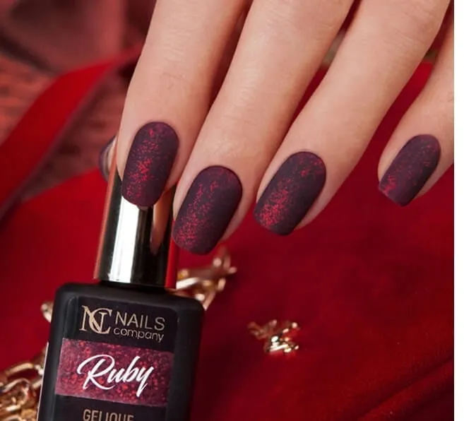 Jeśli czerwień na paznokciach w bardzo ciemnej postaci to dla Was klasyczny manicure, koniecznie sprawdźcie właśnie ten lakier hybrydowy. Wygląda wprost bajecznie. Ciemnoczerwona hybryda z brokatem to must have każdej stylistki paznokci oraz miłośniczki zdobień typu "blink blink". Jeśli lubisz się wyróżniać tak jak rubin spośród innych kamieni szlachetnych, to koniecznie lakier hybrydowy dla Ciebie.
